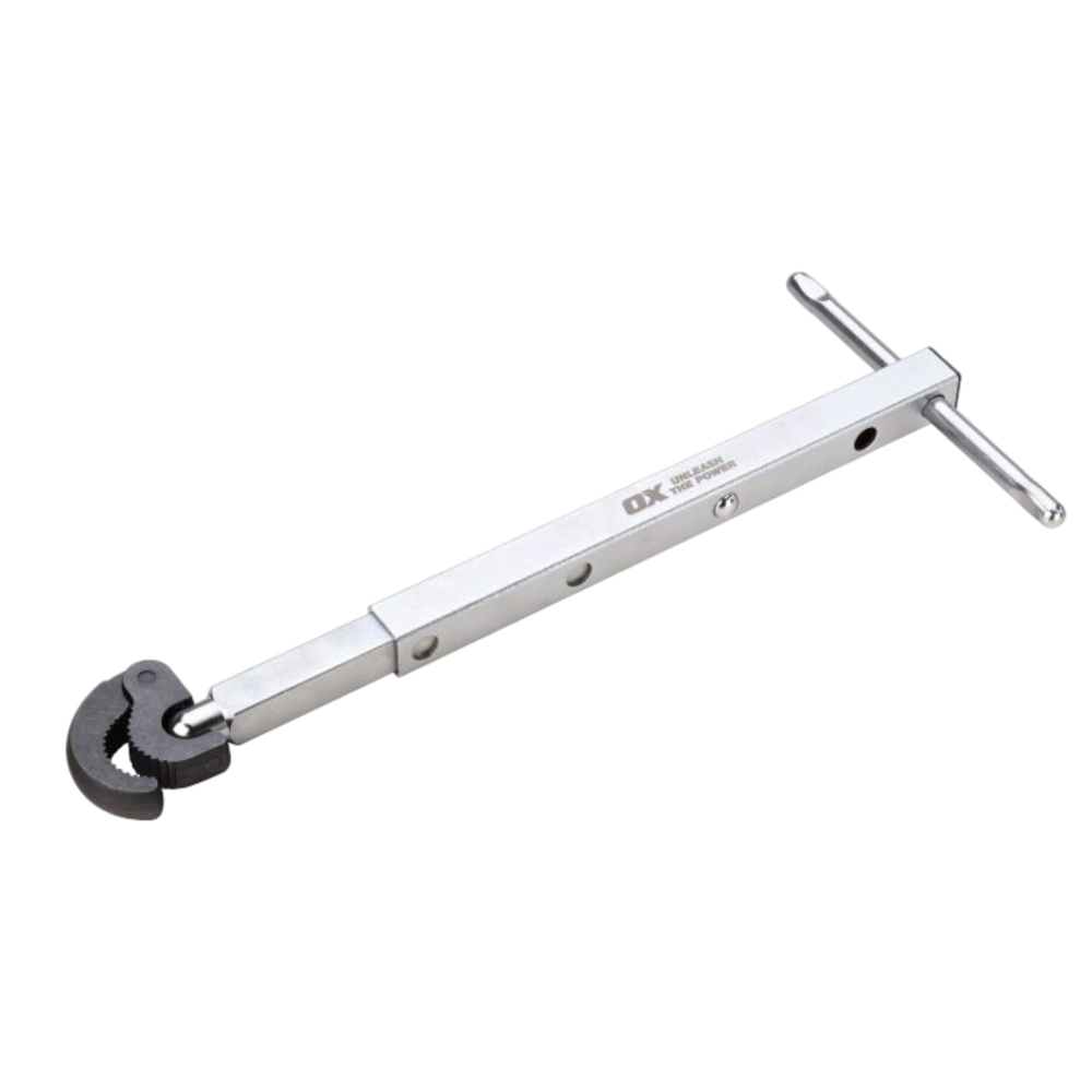 The OX Pro Adjustable Basin Wrench is a telescopic basin nut wrench that comes with a teversible jaw for easy access. This flexible wrench comes with 4 adjustment sizes at a range of 10 to 32mm jaw capacity.
